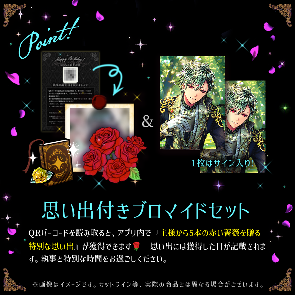 QRコードを読み取み、アプリ内で執事に5本の薔薇の誕生日プレゼントを贈りましょう。